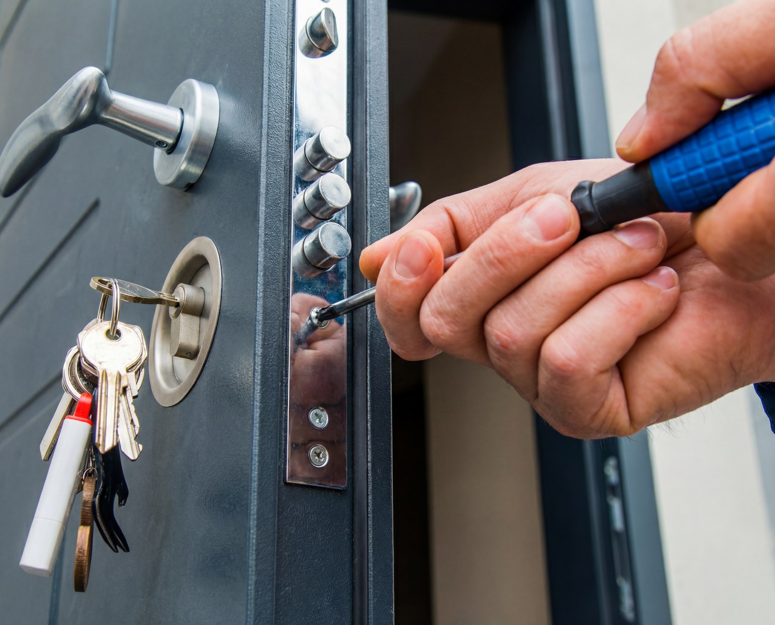 Регулировку проводят на полностью закрытой двери, чтобы сохранить корректную геометрию притвора. В зависимости от конструкции петель используют шестигранный ключ или отвертку. Настройка выполняется по вертикали и горизонтали с минимальным шагом — небольшими поворотами регулировочных винтов. После каждого изменения обязательно проверяют ход полотна, равномерность зазоров и работу замка в штатном режиме.